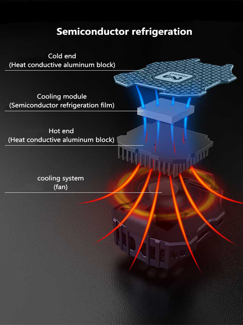 The heat dissipation system is equipped with a fan, the hot end is provided with a heat conductive aluminum block, the refrigeration module is equipped with a semiconductor refrigeration sheet, and the cold end is provided with a heat conductive aluminum block.